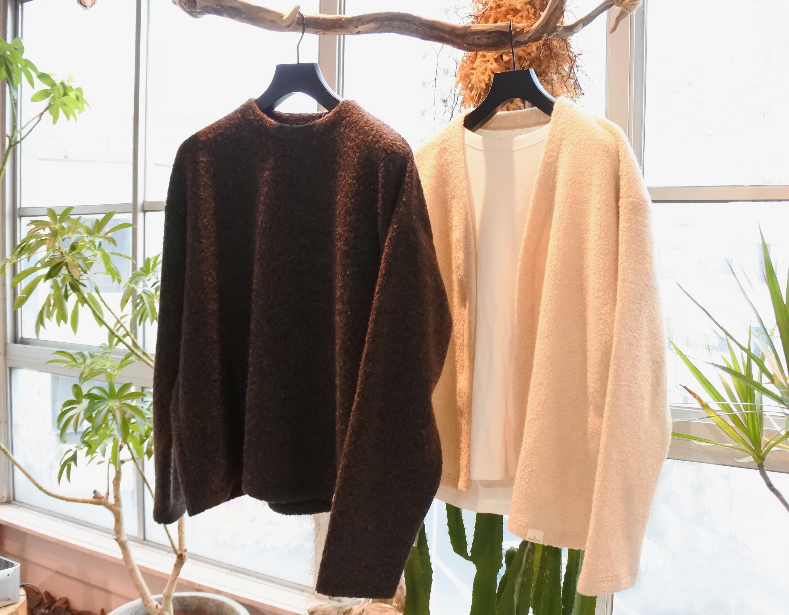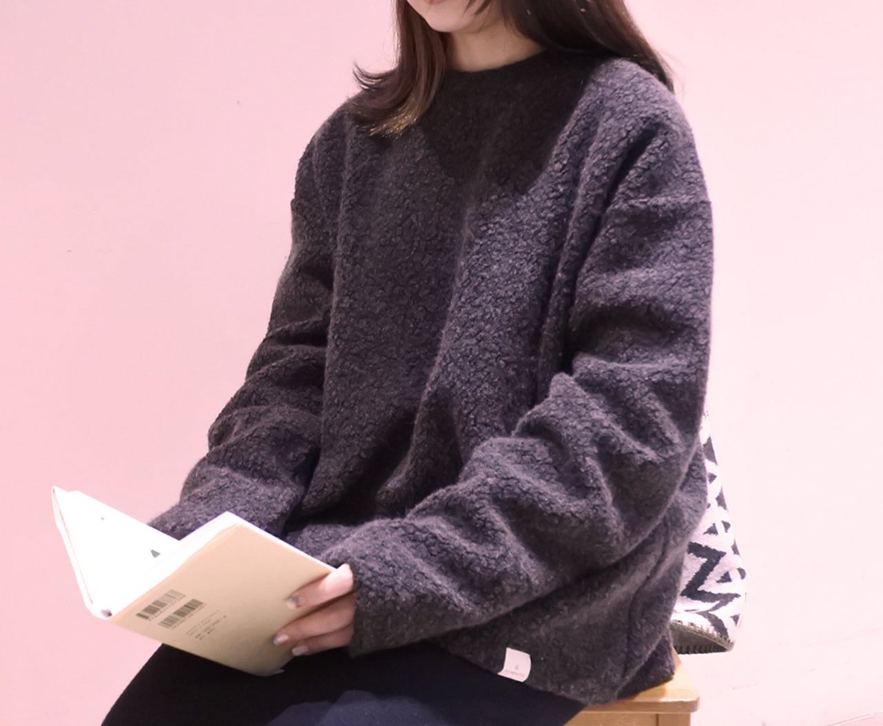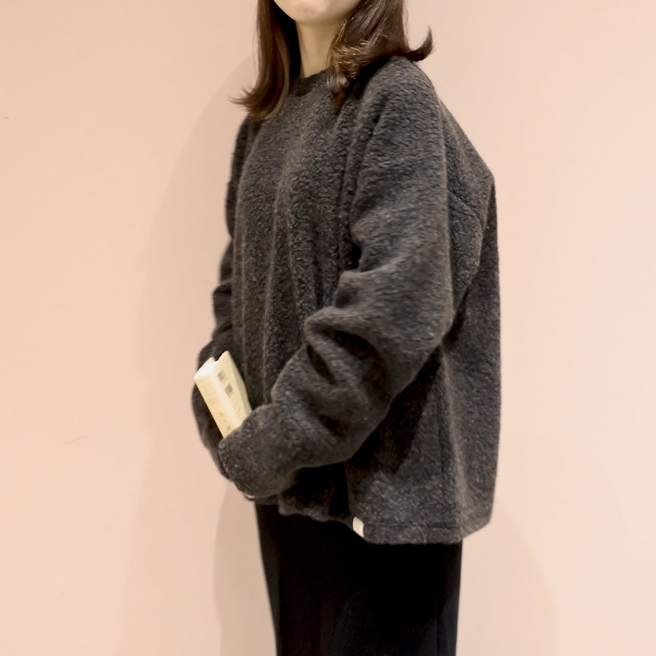 羊みたいにフワモコなリサイクルウール生地で作ったあったかボアニットプルオーバーです。