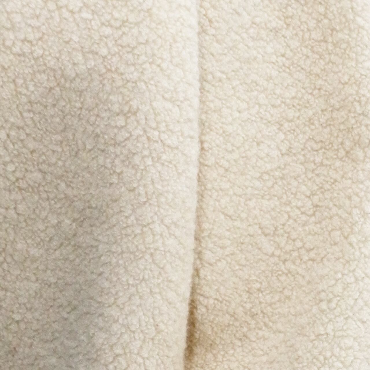 この生地はパイル編みという編み方で、ウールヤーンをループ状に編んでから起毛してモコモコした羊のような表情にしています。